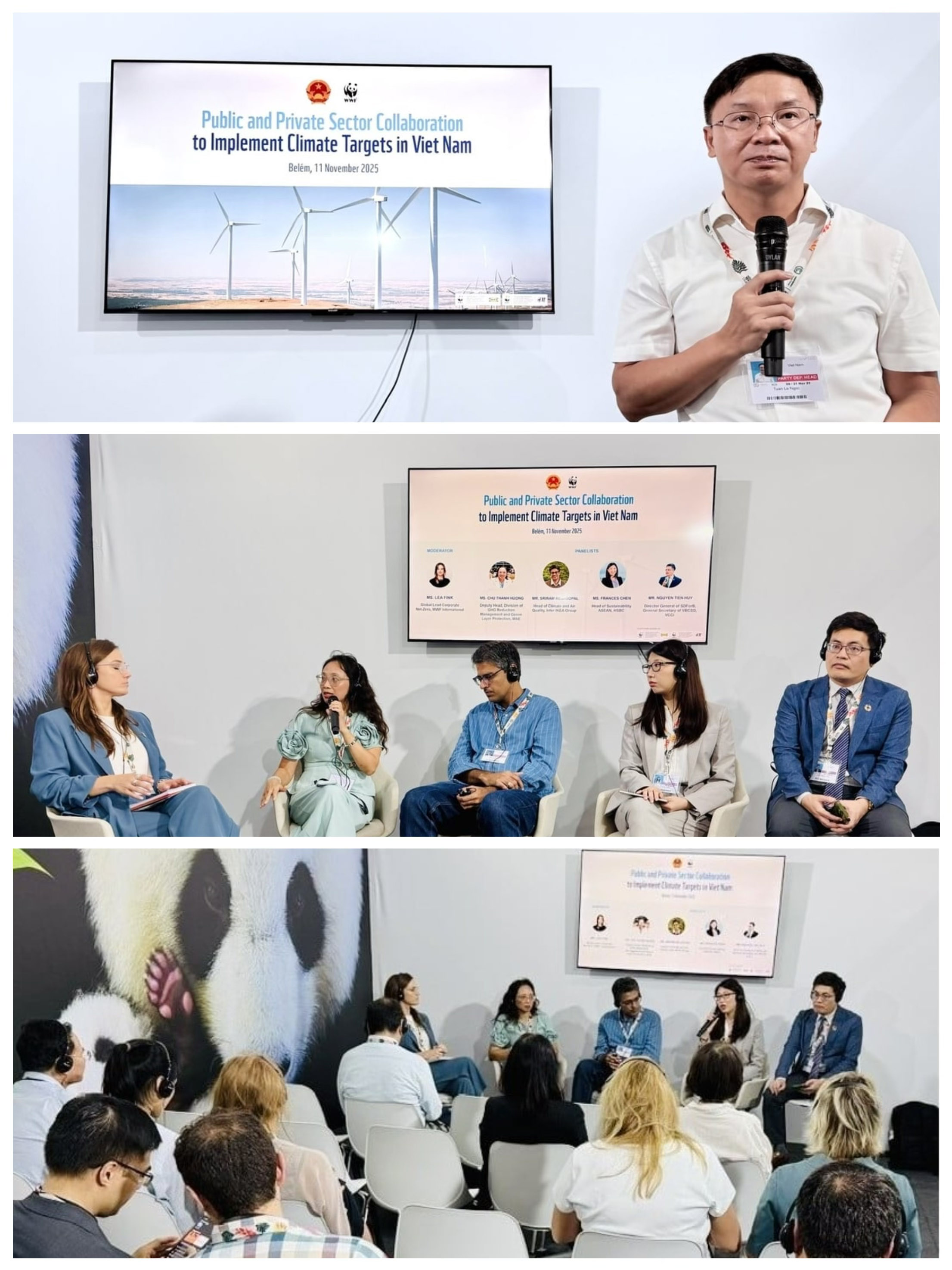 As highlighted by the results of the Global Stocktake, current global efforts remain insufficient to keep the 1.5°C goal within reach, and countries must urgently accelerate the implementation of their climate commitments. This conclusion underscores the need for deep engagement and mobilization of the private sector, which holds critical levers in technology, investment, innovation and supply chain transformation. Recognizing the great potential of partnership in realizing Viet Nam’s commitments, on 11 November 2025, WWF-Viet Nam jointly with the Ministry of Agriculture and Environment of Viet Nam (MAE), IKEA and H&M Group co-organized a side event titled “Public and Private sector collaboration to implement climate targets in Viet Nam”.